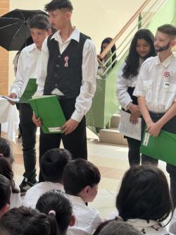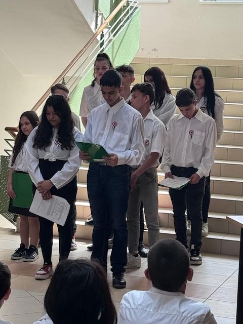 Intézményünkben hagyományosan a 7. osztály készül megemlékező műsorral az ünnepre. Minden évben magasra teszik a mércét az előadó osztályok az utánuk következőknek. Idén is magas színvonalú, felkészült, ötletes összeállítást láthattunk.
